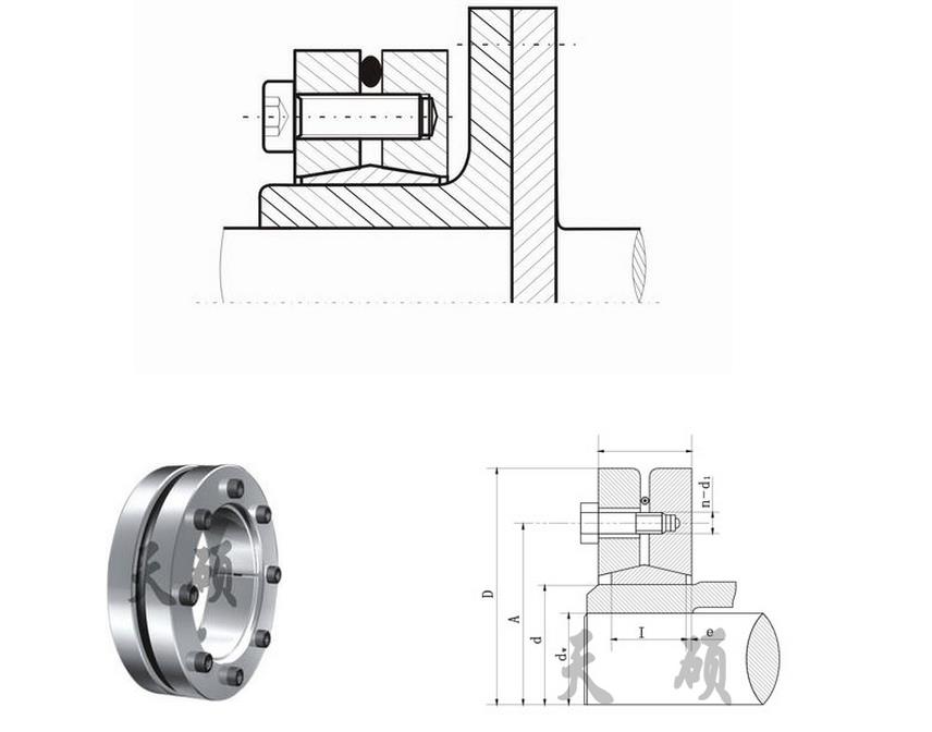 ●脹套夾緊時,各配合表面壓力很大并完全密封,避免了配合面的銹蝕。拆卸時,擰松螺栓,配合面自動放松,軸套及錐形圈自動回復到原始尺寸